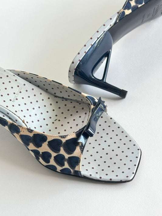 SS2000 Prada Canvas Blue Heart Bow Slides (IT38.5 / US8-8.5)