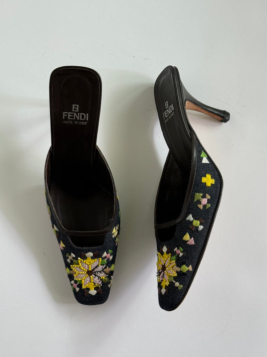 Fendi Embroidered Denim Mules (IT38.5 / US8-8.5)