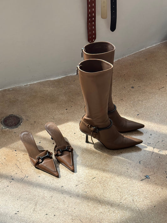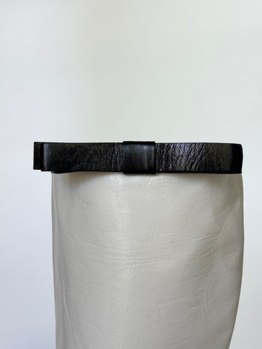 SS2000 Miu Miu Leather Bow Cream Boots (IT37.5 - US7-7.5)