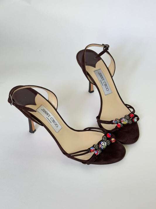 Jimmy Choo Brown Suede Venetian Glass Beaded Sandals (IT38 / US7-7.5)