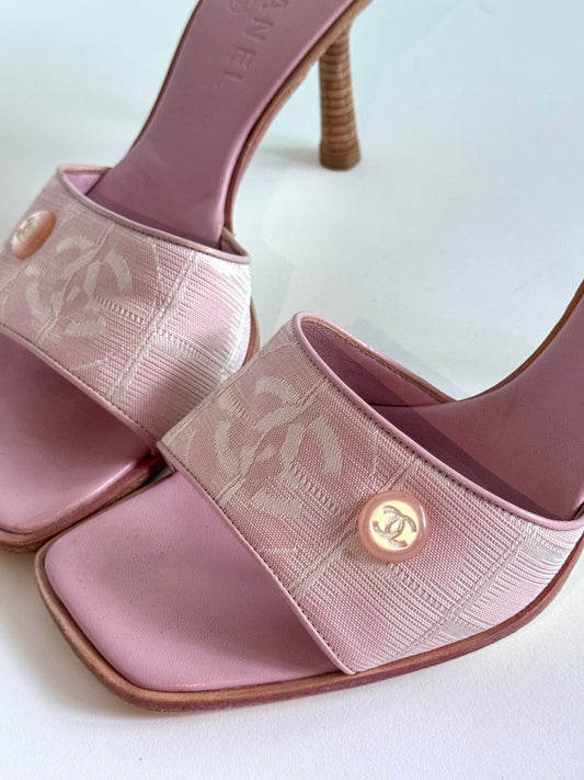 CHANEL Canvas Pink Slides (IT39 / US8-8.5)