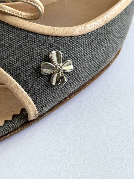 CHANEL, 2004 Cruise Collection - Karl Lagerfeld, Clover Grey Slides (IT37 / US7-7.5)