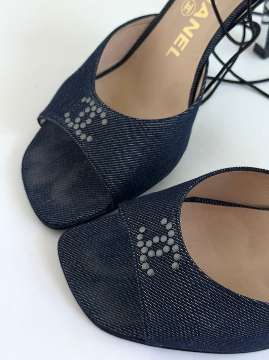 CHANEL Blue Denim Wrap-Up Sandals (IT36.5 / US6-6.5)