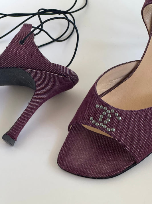 CHANEL Denim Burgundy Wrap-Up Sandals (IT37.5 / US7-7.5)