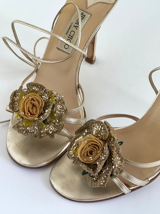 Jimmy Choo Golden Metallic Wrap-Around Sandals (IT39 / US8.5-9)