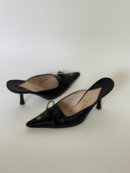CHANEL Black Leather Bow Mules (IT36 / US6)