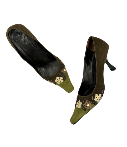 Vintage Moschino Cheap and Chic Suede Floral Pumps (IT37 / US7.5-8)