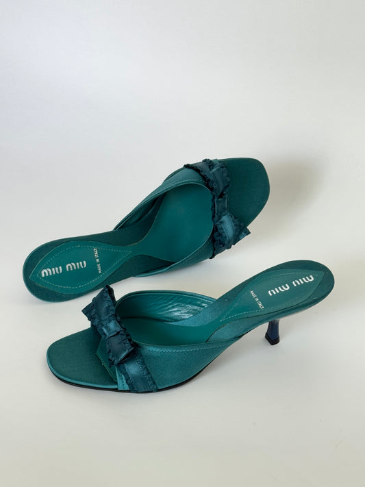 Miu Miu Teal Satin Slides (IT37 / US6.5-7)