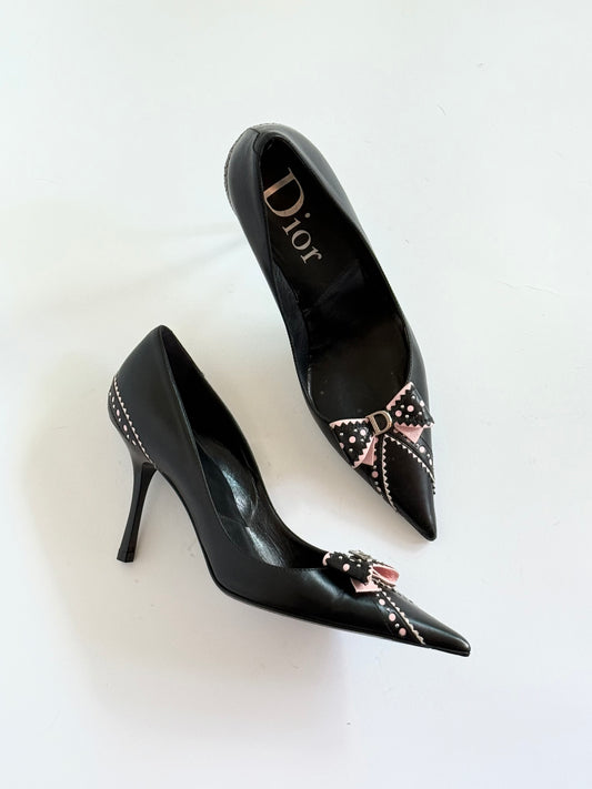 Christian Dior Pink Bow Leather Pumps (IT38 / US8-8.5)