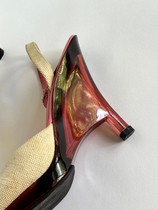 Prada SS98 Canvas Beige and Pink Lucite Wedges (US6-6.5)