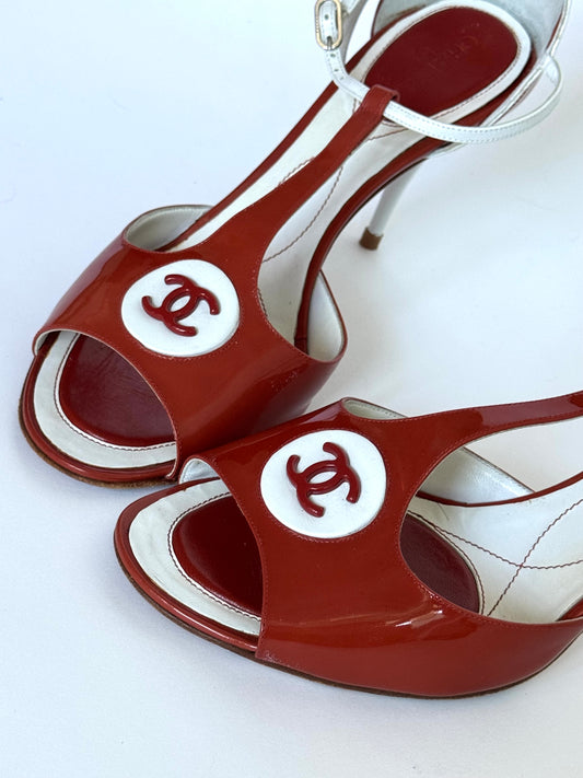 2006 CHANEL Orange CC Peep Toe T-Strap Slingback Heels (IT41 / US9.5-10)