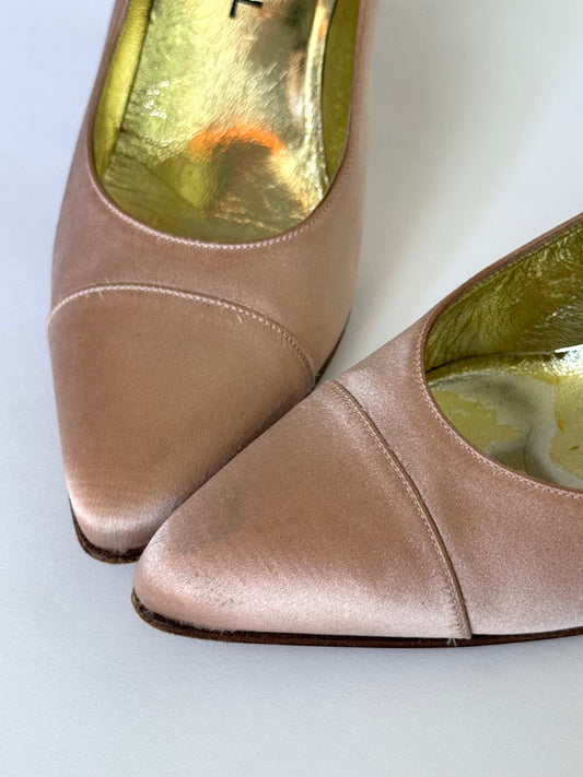 CHANEL 90s Pink Satin Pumps (IT37.5 / US7-7.5)