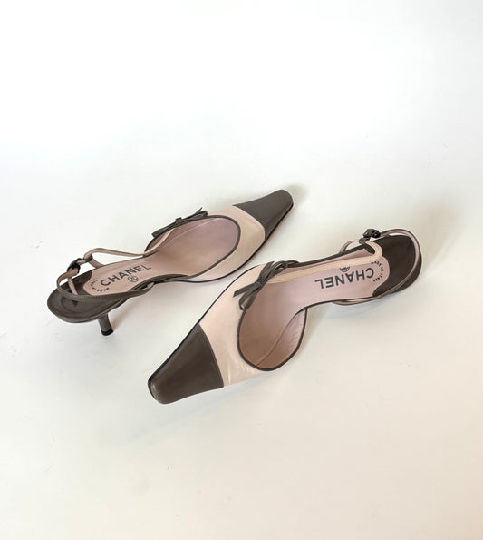 2004 CHANEL Grey and Bone Pink Slingback Pumps (IT39 / US8-8.5)