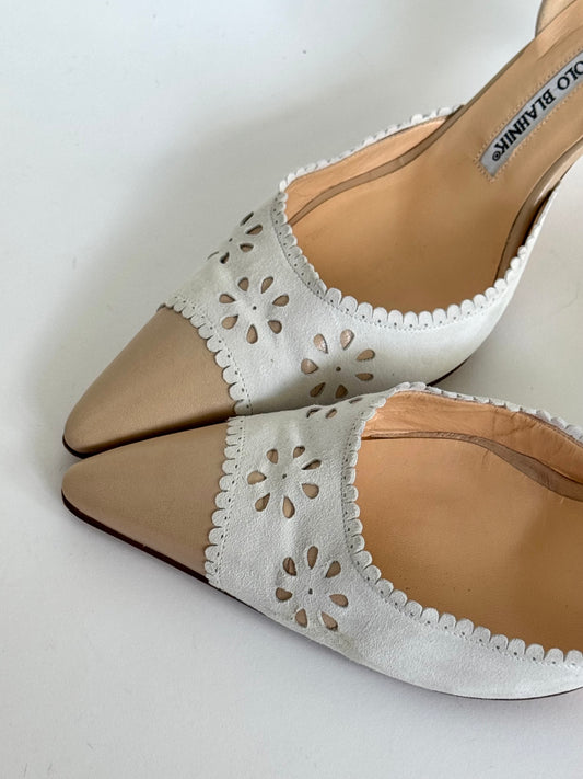 Manolo Blahnik Flower Cutout Cream Slingbacks (IT39.5 / US8.5-9)