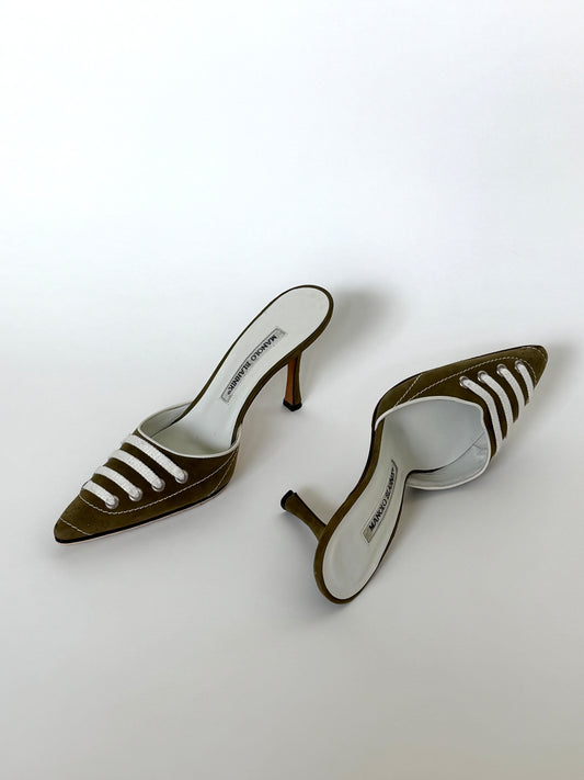 Manolo Blahnik Olive Green Suede Sneaker Mules (IT37 / US6.5-7)