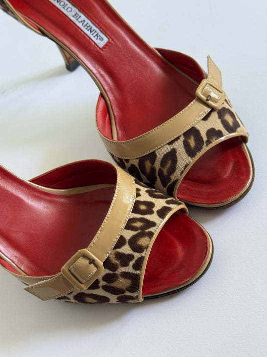 Manolo Blahnik Ponyhair Cheetah Buckle D'Orsay Pumps (IT41.5 / US11-11.5)