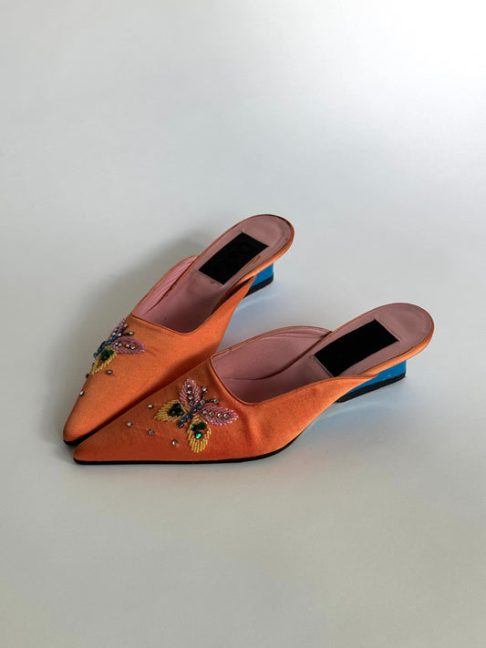 D&G Orange Satin Beaded Butterfly Mules (IT37 / US5.5-6)
