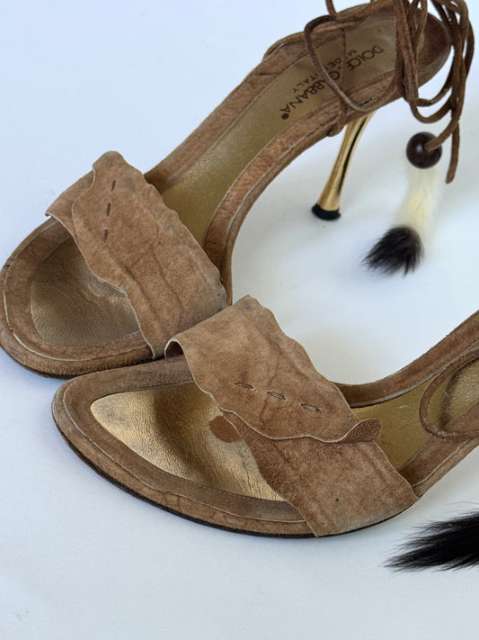 Dolce & Gabbana Tan Suede Lace-Up Sandals (IT36 / US6.5-7)