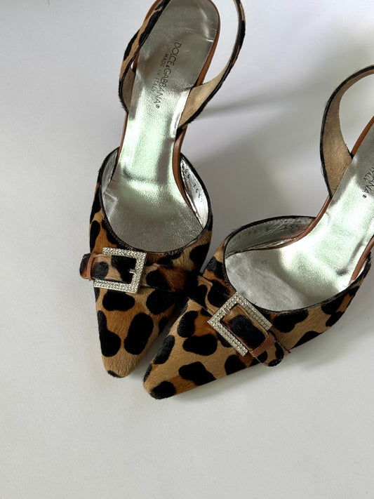 Dolce & Gabbana Ponyhair Cheetah Embellished Buckle Slingback Pumps (IT35.5 / US5-5.5)
