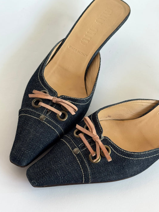 Miu Miu Blue Denim Bow Mules (IT37.5 / US7-7.5)