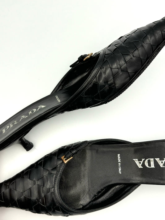 1999 Prada Black Leather Mules (IT36 / US5.5-6)