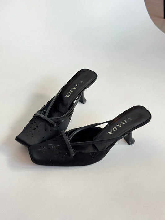 Prada Satin Beaded Black Bow Mules (IT37 / US6-6.5)