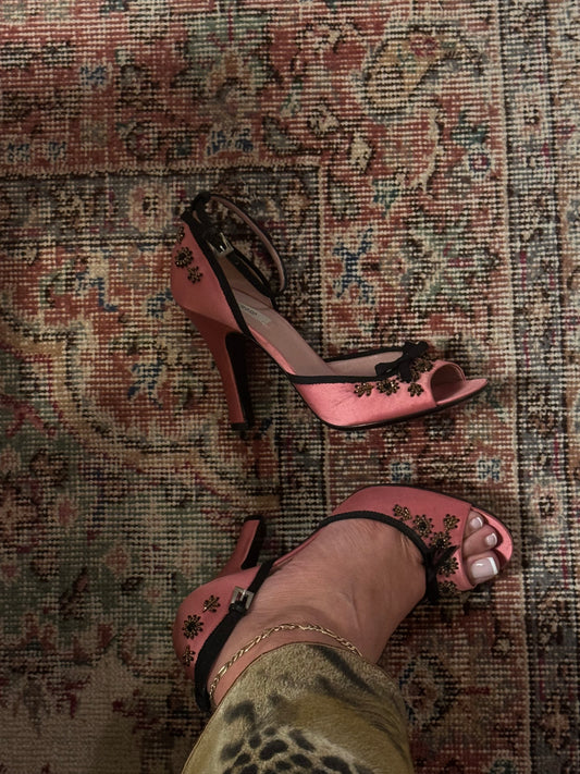 Prada Satin Beaded Coral Bow Pumps (IT36.5 / US6-6.5)