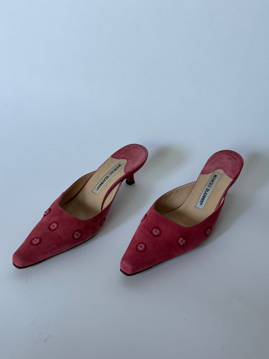 Vintage Manolo Blahnik Coral Suede Mules (IT36 / US5-5.5)