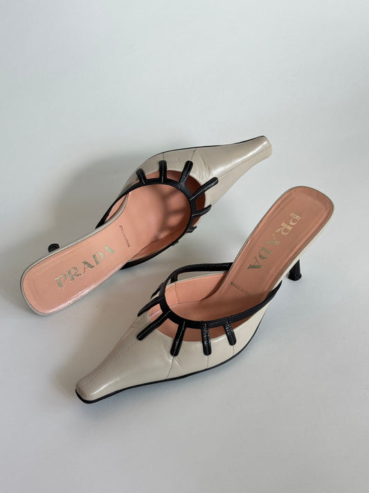 Prada Cutout Beige Leather Mules (IT35.5 / US5-5.5)