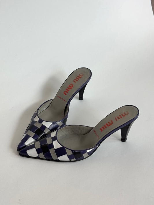 SS2001 Miu Miu Checkered Purple Woven Leather Mules (IT36.5 / US6-6.5)
