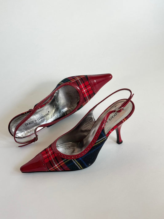 Dolce & Gabbana Wool Red Plaid Slingback Pumps (IT36.5 / US6-6.5)
