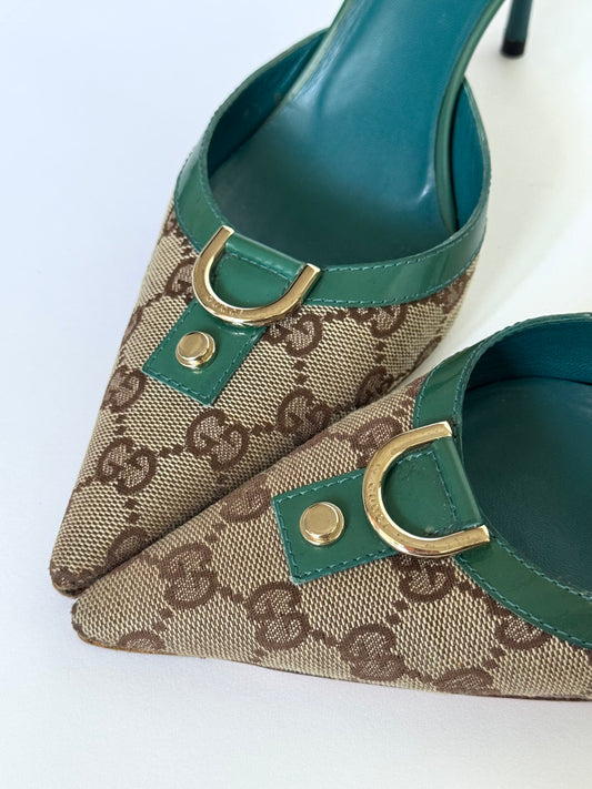GUCCI Monogram Teal Horsebit Mules (8.5B / US8-8.5)