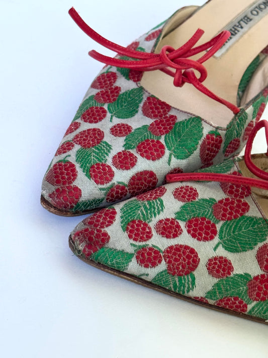 Manolo Blahnik Raspberry Bow Mules (IT38 / US6.5-7)
