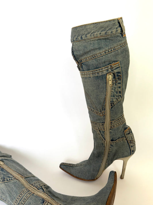 D&G Vintage Knee-High Denim Boots (IT38 / US8-8.5)